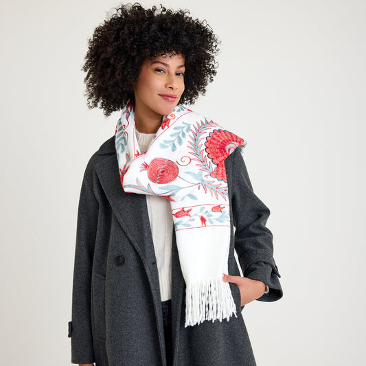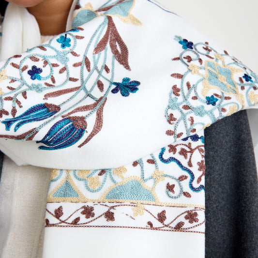 El Işlemesi Ipek Kaşmir Şal – Lalezar Beyaz