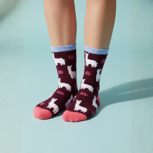 Lama Çiçekli Bordo Soket Çorap