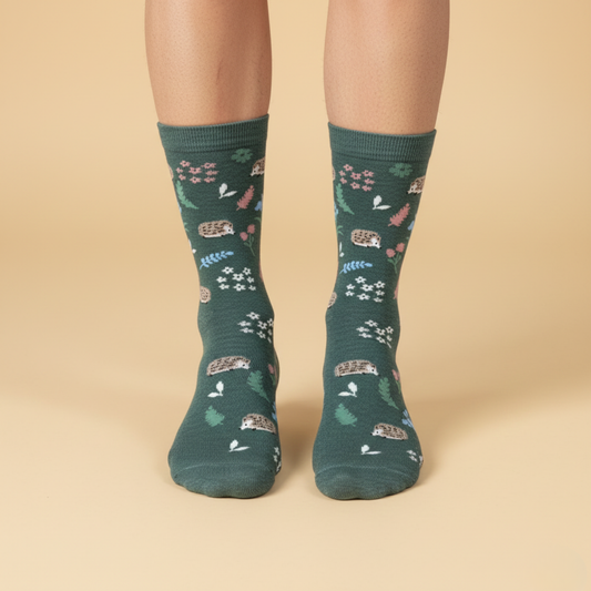 Forest Friends Kirpi Desenli Yeşil Çorap