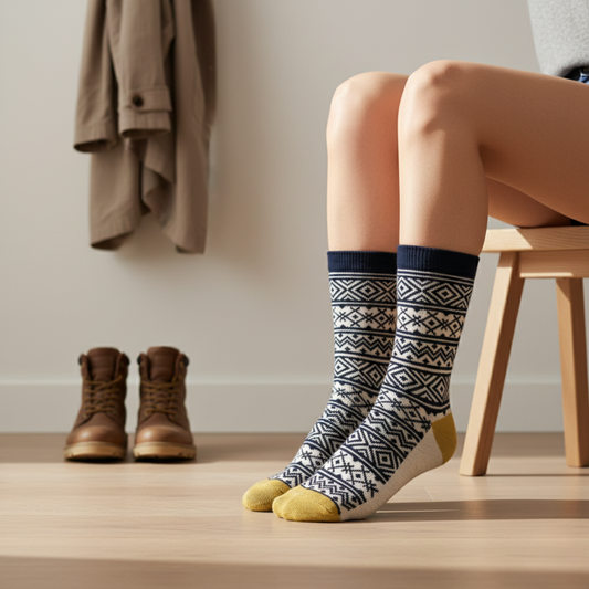 Nordic Pattern Sarı Detaylı Bot Çorabı