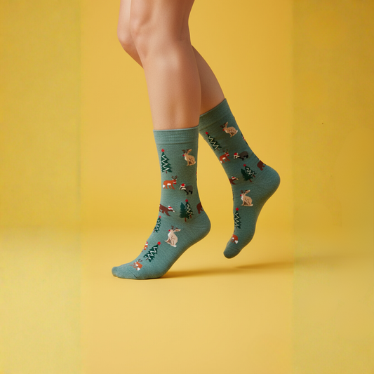 Ormanda Yılbaşı Partisi Desenli Çorap