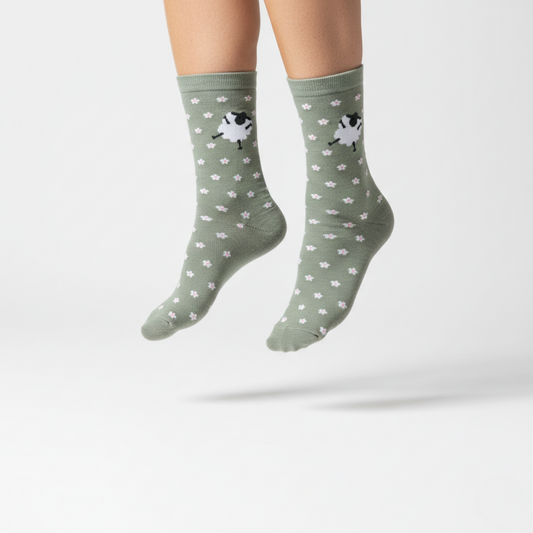 Papatyalı Kuzu Desenli Yeşil Çorap