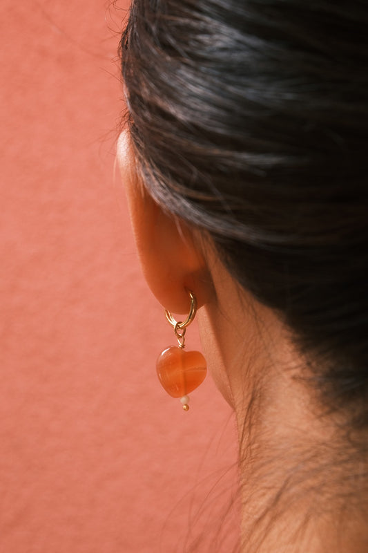 Akik Kalp Kesim Doğal Taş Charm Küpe