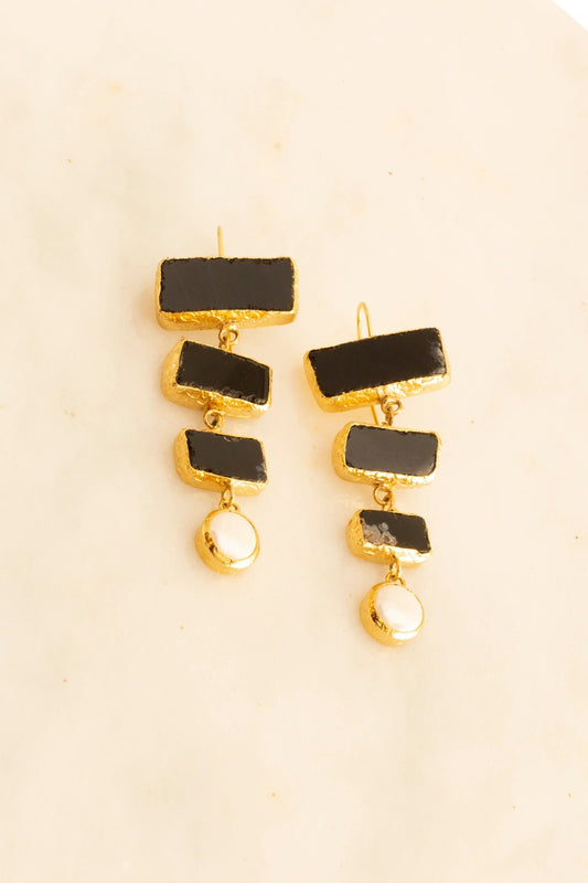 Akik ve İnci Taşlı Tasarım Altın Kaplama Sıvama Küpe