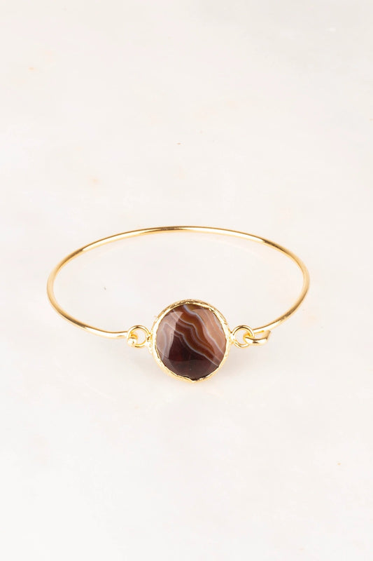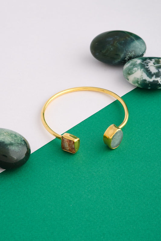 Akik Taşlı Altın Kaplama Tekli Sıvama Doğal Taş Kelepçe Bileklik