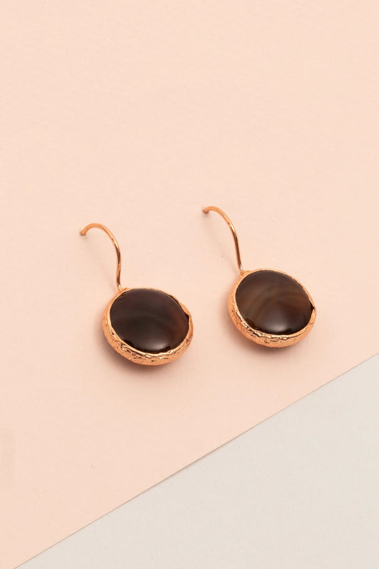 Akik Taşlı Rose Kaplama Tekli Sıvama Askı Küpe