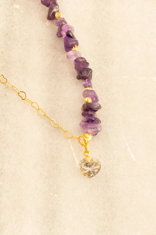 Ametist Minimal İnci Kristal Doğal Taş Tel Sarma Kolye