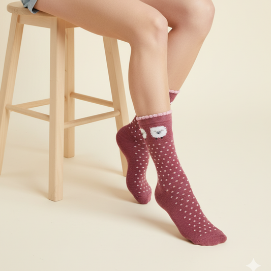 Pofuduk Koyun Puantiyeli Gül Kurusu Soket Çorap