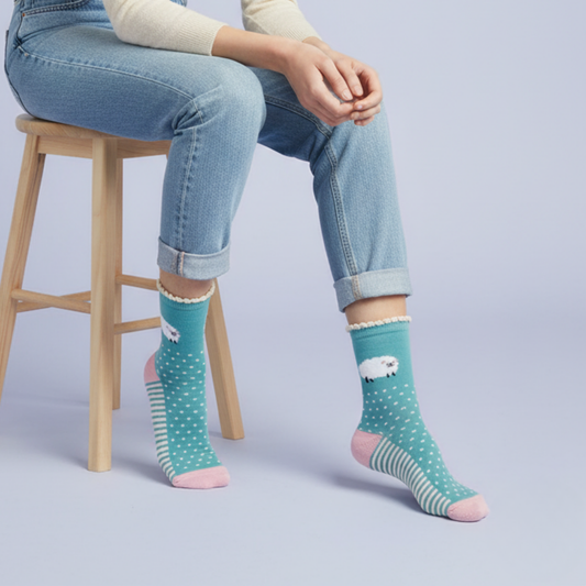 Pofuduk Koyun Puantiyeli Turkuaz Soket Çorap