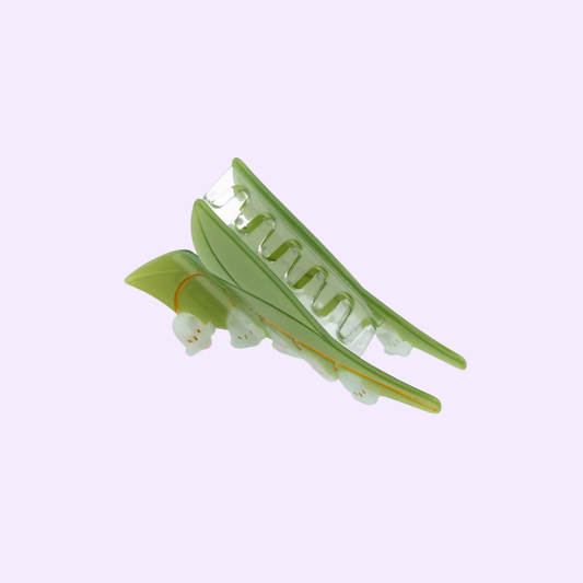 Yeşil Yaprak Beyaz Çiçek Klips Toka