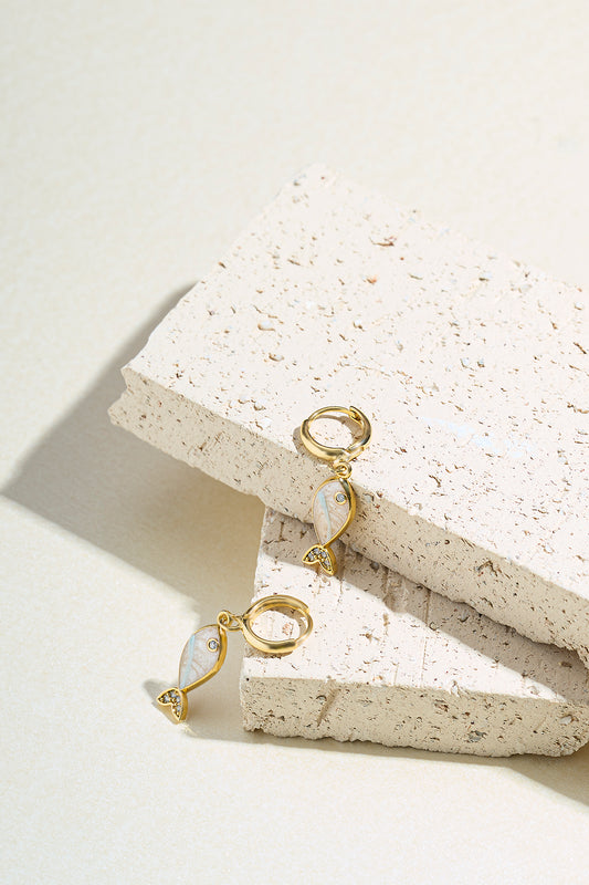 İnce Tel İstiridyeli İnci Charm Halka Küpe