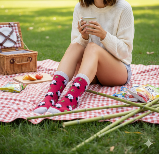 Kabarık Panda Bambu Desenli Pembe Soket Çorap