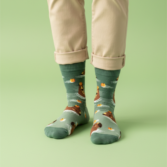 Yüzen Kapibaralar Desenli Yeşil Çorap