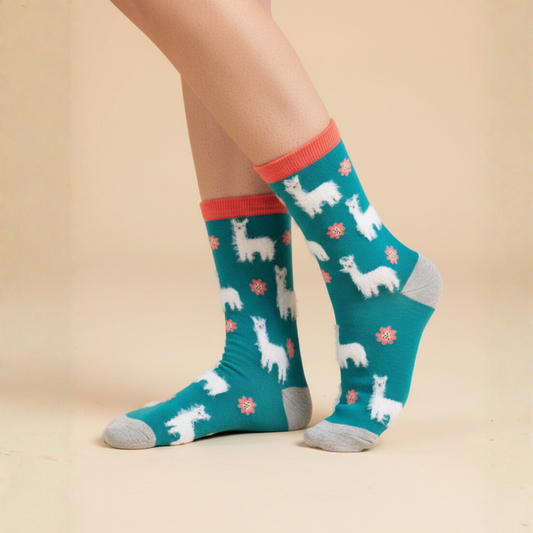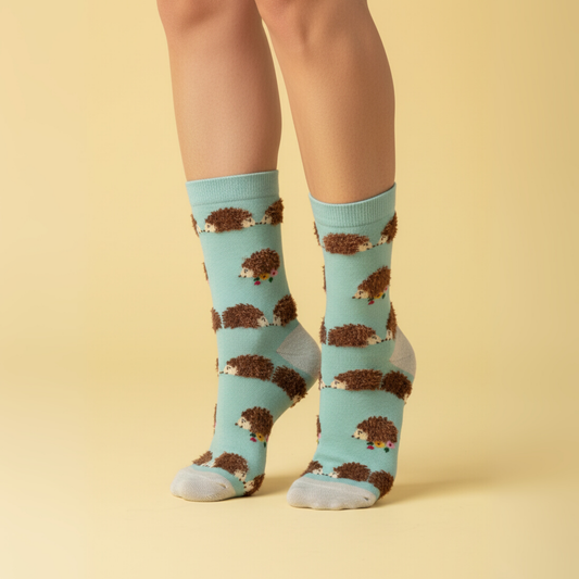 Tüylü Kirpi Desenli Turkuaz Çorap