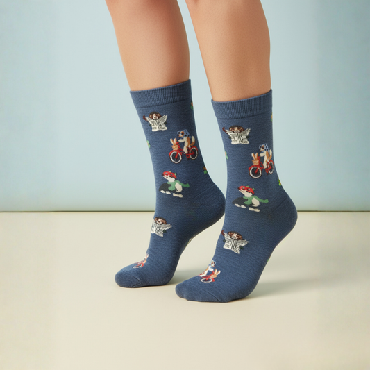 Tüylü Süs Köpeği Desenli Lila Zeminli Çorap