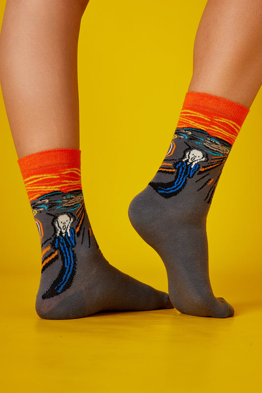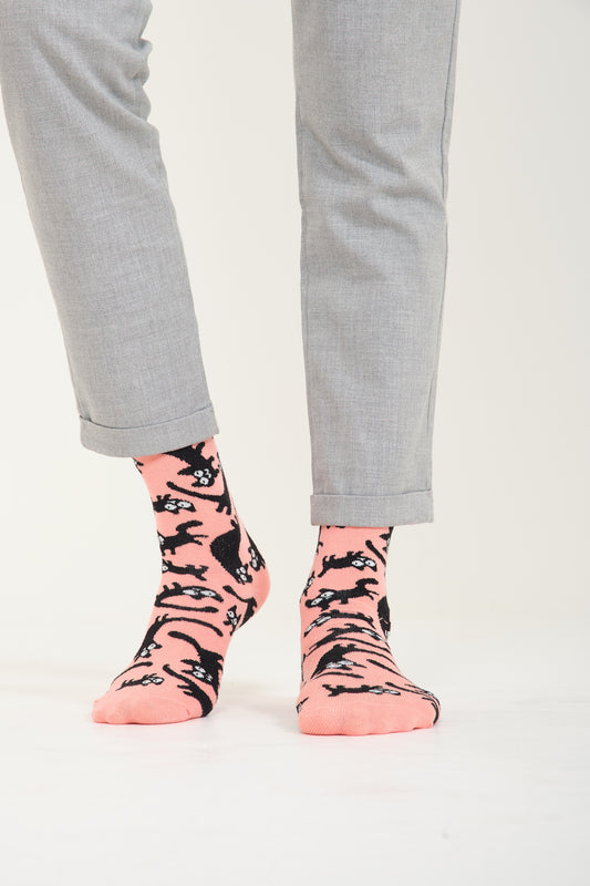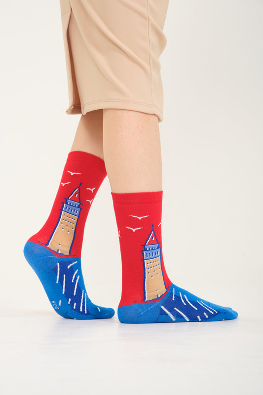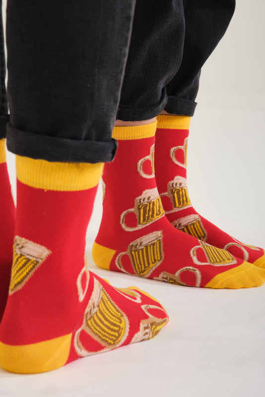 Bira Kırmızı Fon Desenli Renkli Çorap