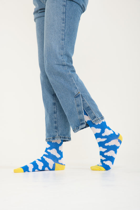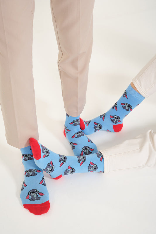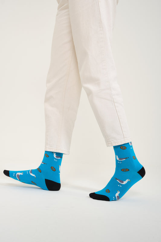 Beyaz Zemin Mavi Donut Desenli Renkli Çorap