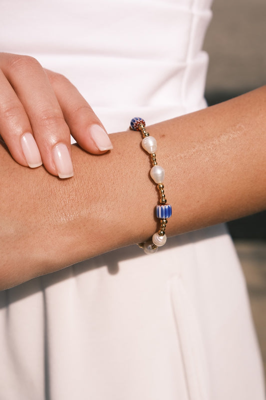 Mini Barok İnci Vintage Cam Boncuk Bileklik-Lacivert