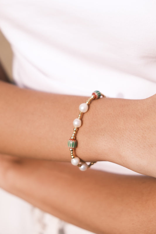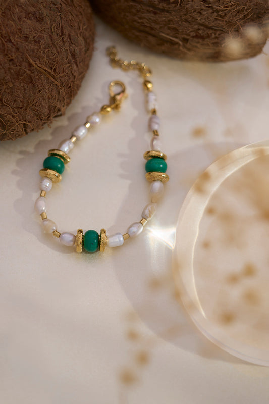 Mini Barok İnci Vintage Cam Boncuk Bileklik-Yeşil
