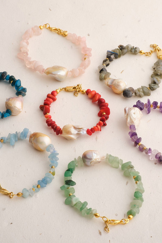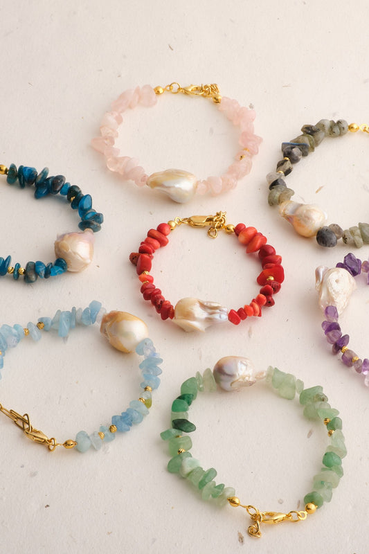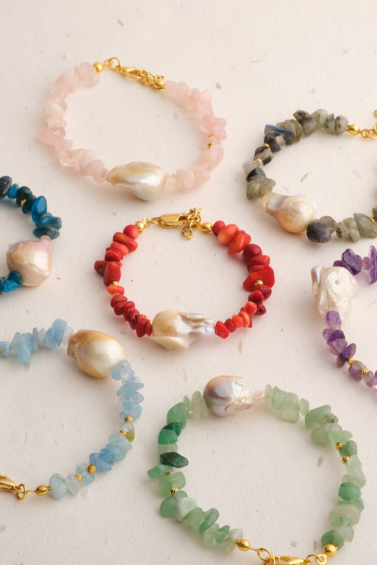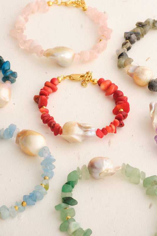 Mercan Kırık Taş Barok İnci Dizi Bileklik