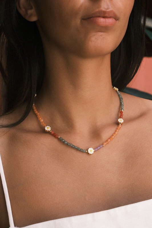 Rainbow in Daisy- Renkli Yeşim Taşlı Dizi Kolye