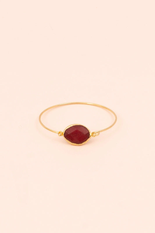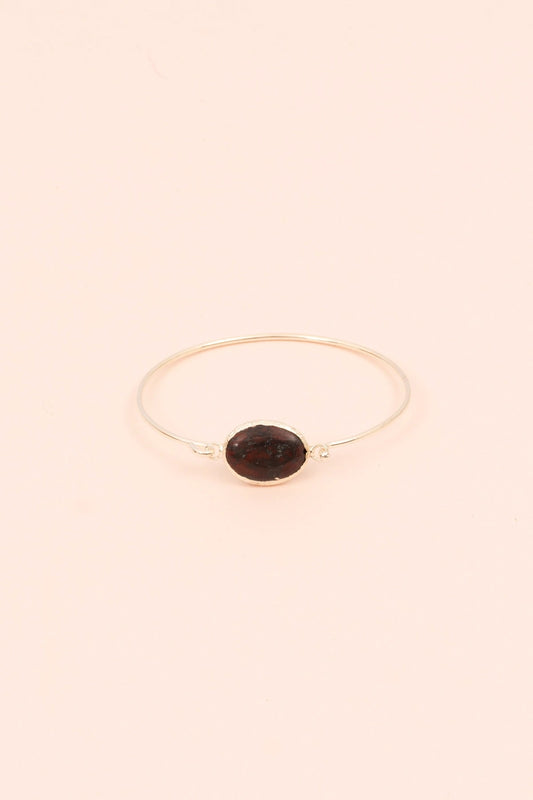 Kan Taşı Gümüş Kaplama Tekli Sıvama Doğal Taş Kelepçe Bileklik