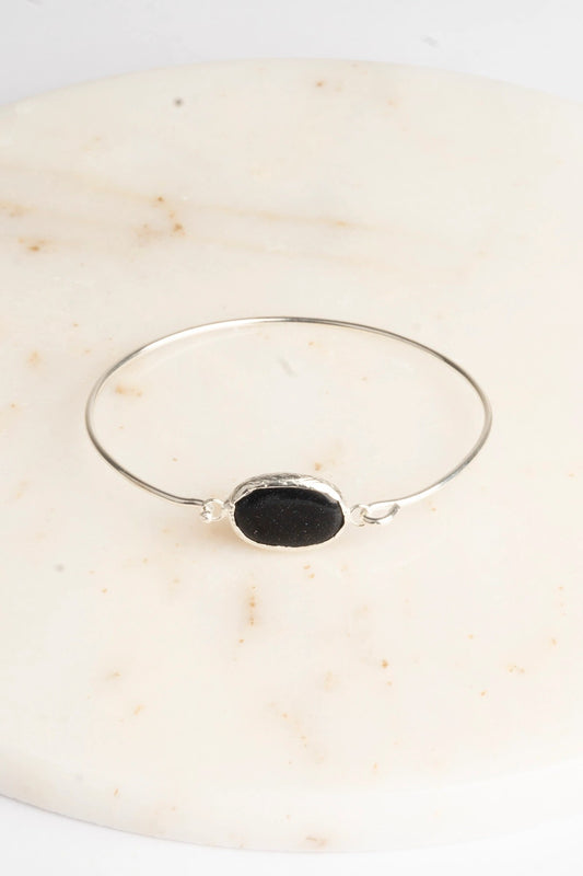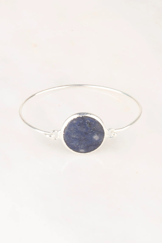 Sodalit Taşı Gümüş Kaplama Tekli Sıvama Doğal Taş Kelepçe Bileklik