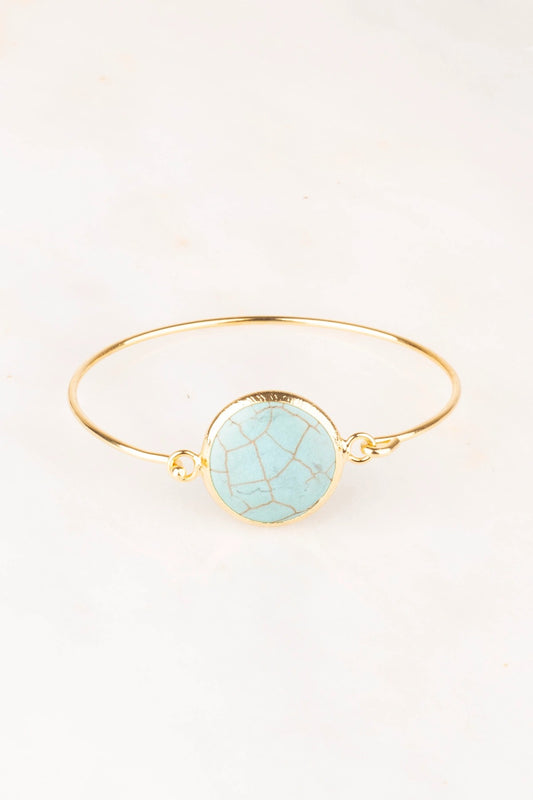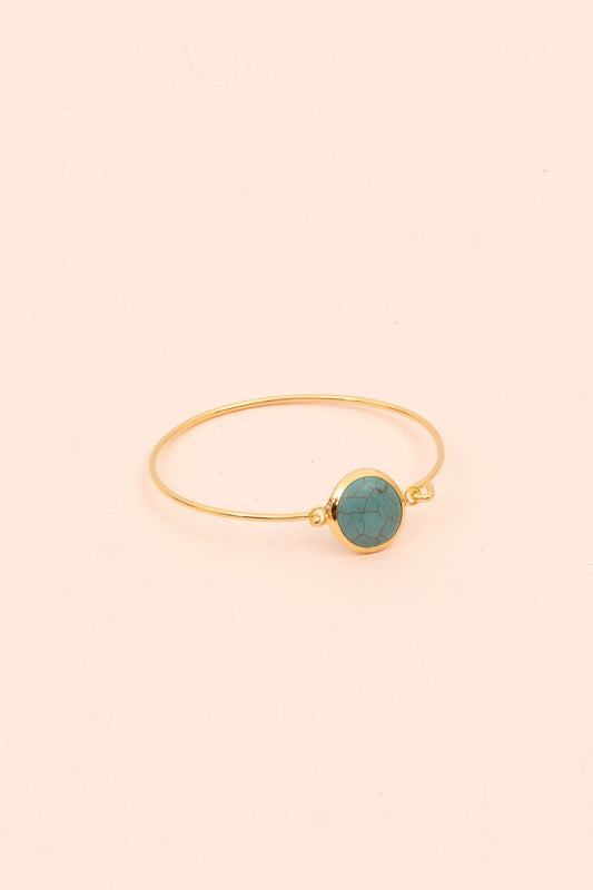 Turkuaz Daire Kesim Altın Kaplama Tekli Sıvama Doğal Taş Kelepçe Bileklik