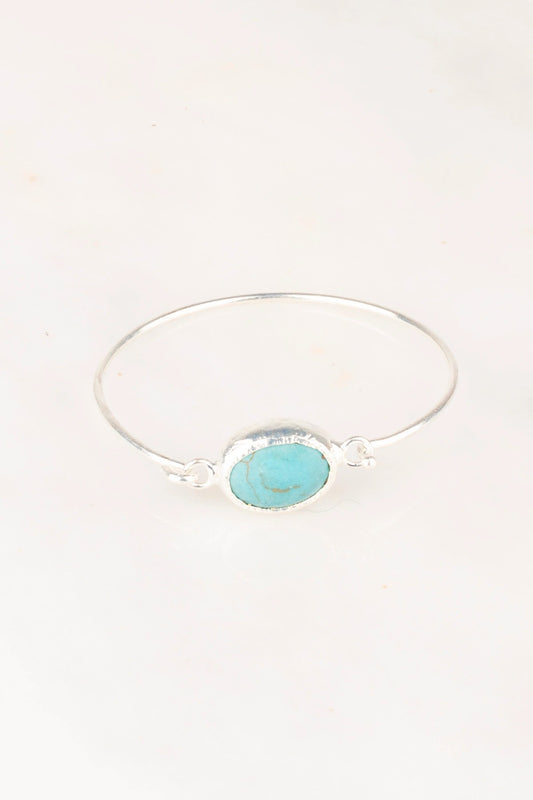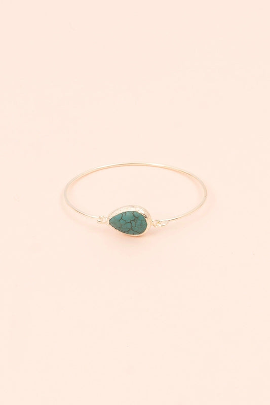 Turkuaz Damla Kesim Gümüş Kaplama Tekli Sıvama Doğal Taş Kelepçe Bileklik