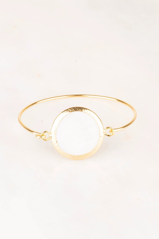 Sedef Daire Kesim Altın Kaplama Tekli Sıvama Doğal Taş Kelepçe Bileklik