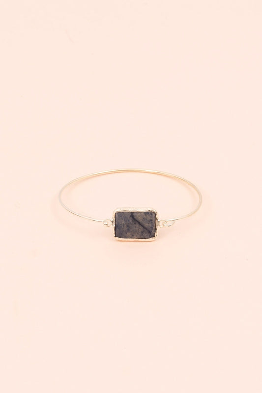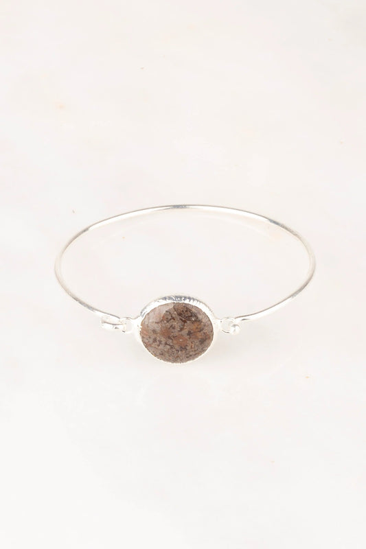 Daire Kesim Jasper Taşlı Gümüş Kaplama Tekli Sıvama Doğal Taş Kelepçe Bileklik