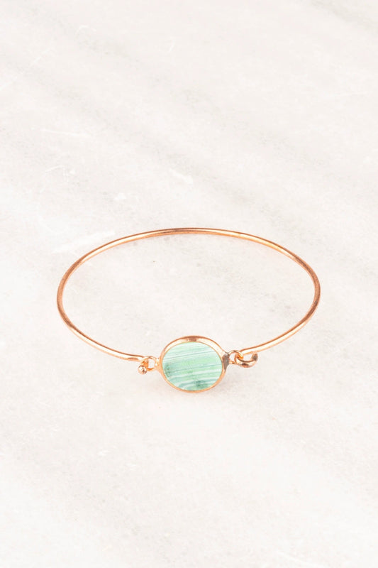 Malahit Taşı Bakır Tekli Sıvama Doğal Taş Kelepçe Bileklik