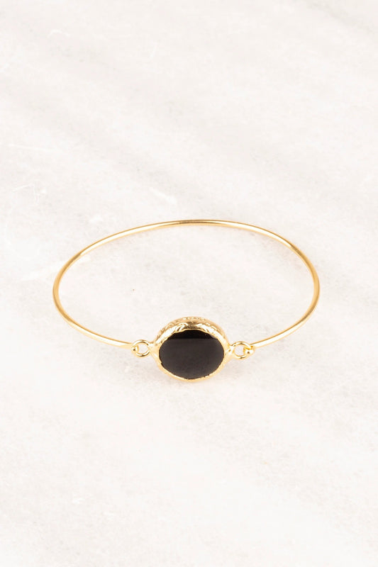 Oniks Daire Kesim Altın Kaplama Tekli Sıvama Doğal Taş Kelepçe Bileklik