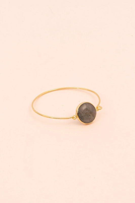 Labradorit Taşlı Altın Kaplama Tekli Sıvama Doğal Taş Kelepçe Bileklik