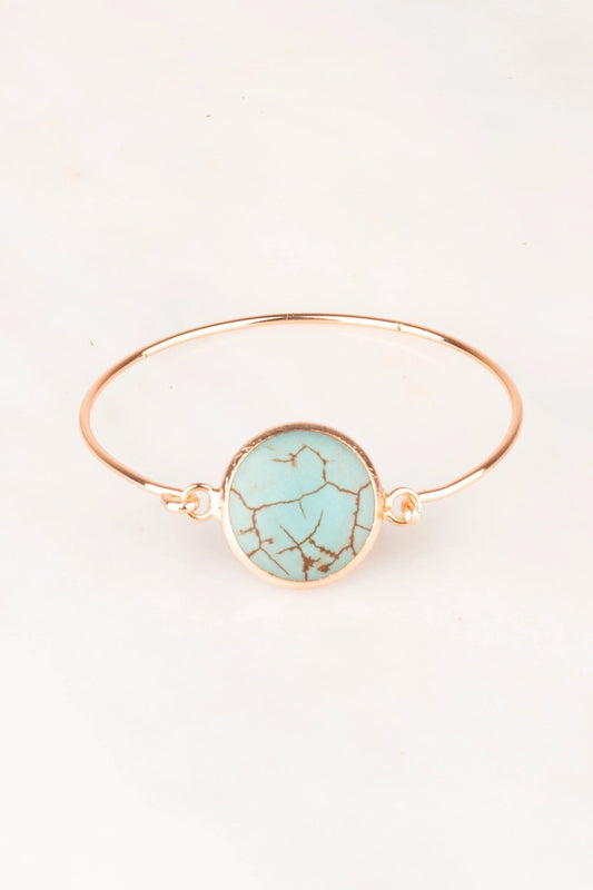 Turkuaz Daire Kesim Rose Kaplama Tekli Sıvama Doğal Taş Kelepçe Bileklik