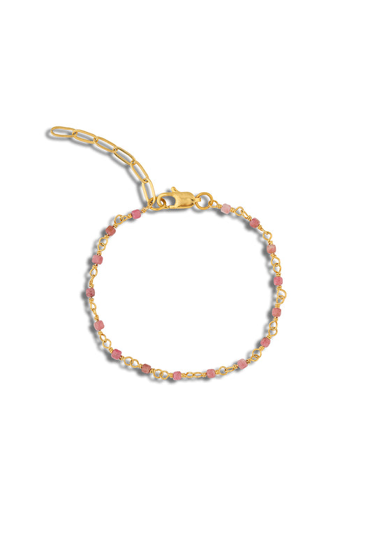 Pembe Yakut Küp Kristal Doğal Taş Tel Sarma Bileklik