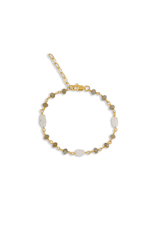 Rondela Labradorit Ay Taşı Kristal Doğal Taş Tel Sarma Bileklik