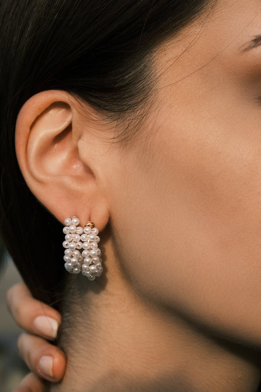 Gümüş Zincir İnci Büyük Halka Doğal Taş Küpe