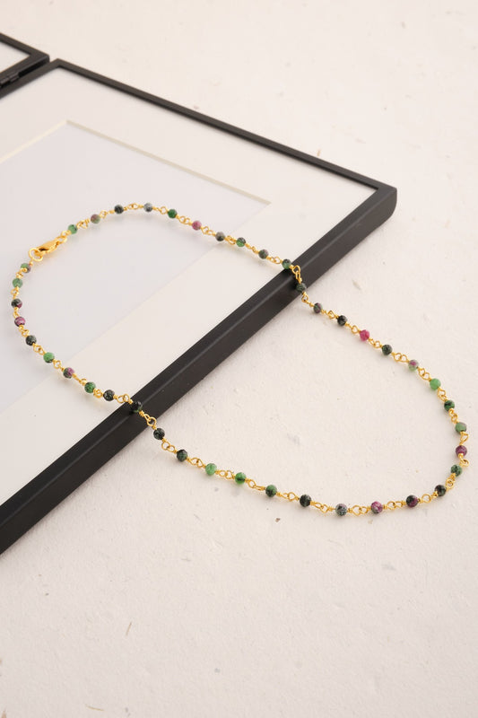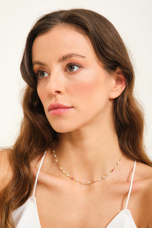 Minimal Yakut İnci Kristal Doğal Taş Tel Sarma Kolye