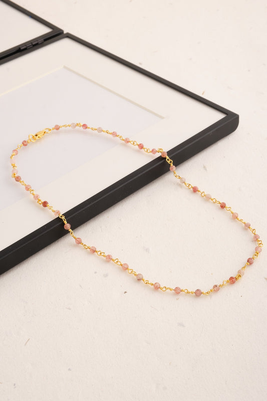 Çilek Kuvars Kristal Doğal Taş Tel Sarma Kolye