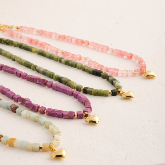 Küp Kesim Doğaltaş Kalp Figürlü Kolye