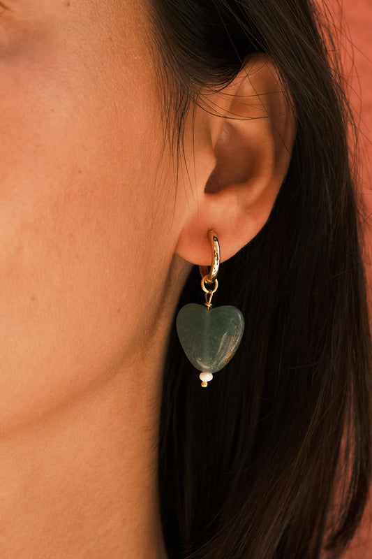 Aventurin Kalp Kesim Doğal Taş Charm Küpe