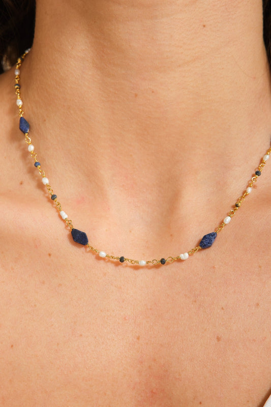 Lapis Lazuli İnci Mix Kristal Doğal Taş Tel Sarma Kolye