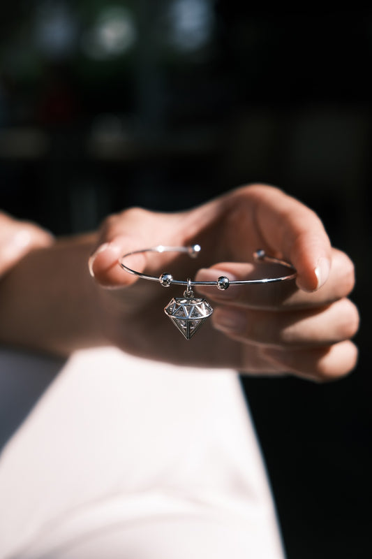 Elmas Sallantılı Gümüş Kelepçe Bileklik