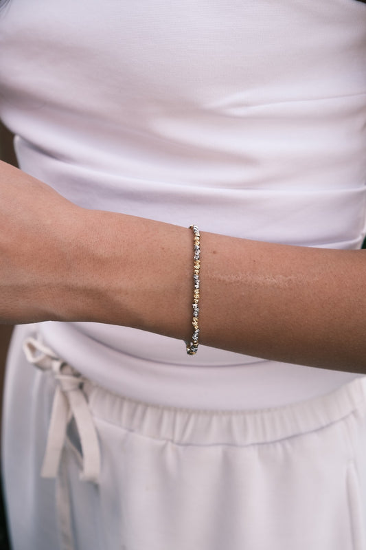 Dorika Boncuk Gümüş Altın Mix Dizi Bileklik