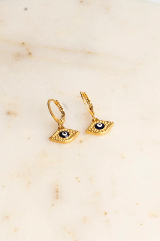 Nazar Göz Figürlü İşlemeli Charm Altın Kaplama Halka Küpe
