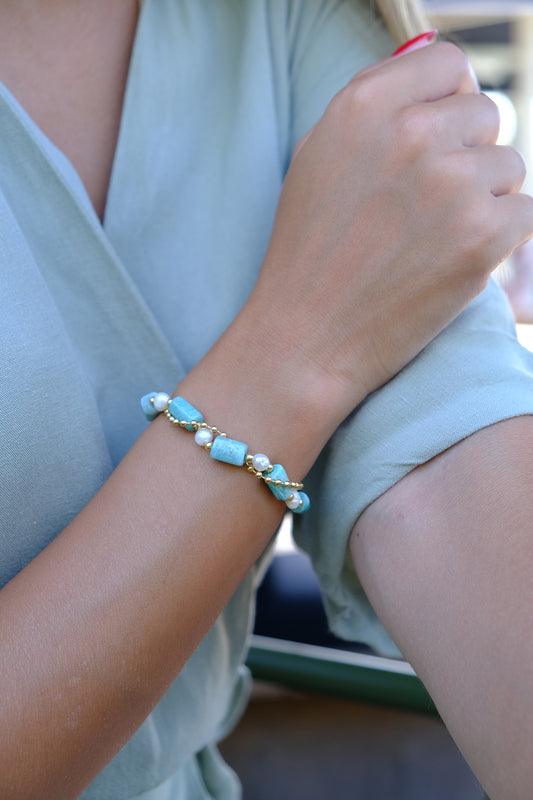 Mini Barok İnci Vintage Cam Boncuk Bileklik-Turkuaz