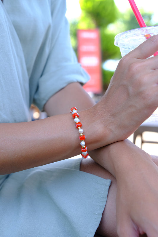 Turuncu Murano Cam Nazar Eggy İnci Dizi Bileklik