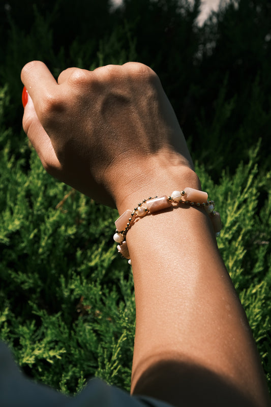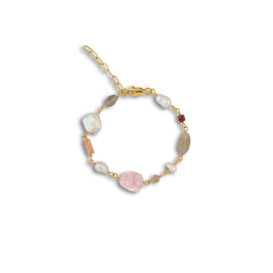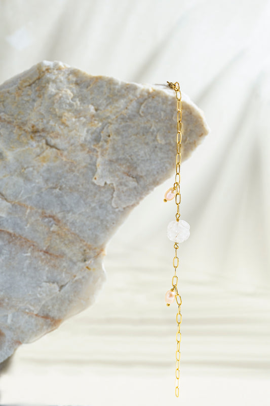 Çiçek Pembe Kuvars - İnci Zincir Bileklik