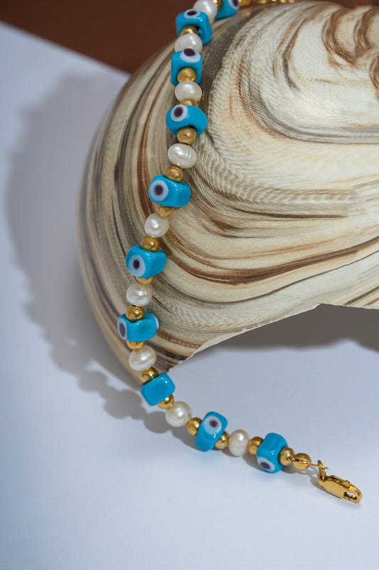 Mavi Murano Cam Nazar Eggy İnci Dizi Bileklik